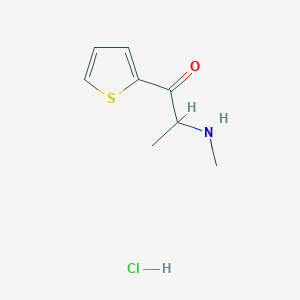 This compound, also known as β-keto-methiopropamine (βk-MPA), is a synthetic stimulant classified as a synthetic cathinone.[2] Its chemical structure, 2-(methylamino)-1-(2-thienyl)-1-propanone, features a thiophene (B33073) ring in place of the phenyl ring found in its well-known analog, methcathinone (B1676376).[1][2] This substitution places it within the thiophene class of compounds.[3][4]