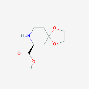 The ethylene acetal moiety in "(S)-4-oxopipecolic acid ethylene acetal" serves as a protecting group for the ketone functionality at the C4 position of the piperidine ring. This protection is essential to prevent unwanted reactions at the carbonyl group during subsequent synthetic transformations. The most common method for the formation of this cyclic acetal is the acid-catalyzed reaction of the corresponding 4-oxopiperidine with ethylene glycol.