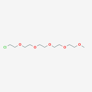 16-Chloro-2,5,8,11,14-pentaoxahexadecane is a polyethylene glycol (PEG)-based compound featuring a terminal chlorine atom. The chlorine atom at the terminal position enhances reactivity for nucleophilic substitution, making it a versatile intermediate for functionalization.