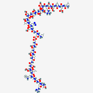 CC(C)CC(C(=O)NC(CCC(=O)O)C(=O)NC(CC(C)C)C(=O)NC(CC(=O)O)C(=O)NC(CO)C(=O)NC(CCCNC(=N)N)C(=O)OC(=O)C(CO)NC(=O)C(C(C)O)NC(=O)C(C(C)O)NC(=O)C(CO)NC(=O)C(C(C)O)NC(=O)C(CC(=O)O)NC(=O)C(CO)NC(=O)C(CC(C)C)NC(=O)C(CC1C=NC=N1)NC(=O)C(CC(=O)O)NC(=O)CNC(=O)C(CCC(=O)OC(=O)CNC(=O)C(CO)NC(=O)CNC(=O)C(C(C)O)NC(=O)C(C(C)C)NC(=O)CNC(=O)C(CO)NC(=O)C(CC(=O)O)NC(=O)C(CC(C)C)NC(=O)C(CC2=CNC3=CC=CC=C32)NC(=O)C(C)NC(=O)C(CO)NC(=O)C(CCCNC(=N)N)NC(=O)C(C(C)O)N)NC(=O)C(CC(C)C)N)N | |