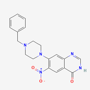 InChI=1S/C19H19N5O3/c25-19-15-10-18(24(26)27)17(11-16(15)20-13-21-19)23-8-6-22(7-9-23)12-14-4-2-1-3-5-14/h1-5,10-11,13H,6-9,12H2,(H,20,21,25) |