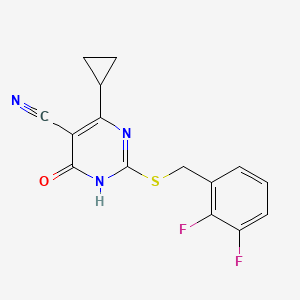 The chemical name for this compound is 4-cyclopropyl-2-[(2,3-difluorophenyl)methylsulfanyl]-6-oxo-1H-pyrimidine-5-carbonitrile. uni-freiburg.dejkchemical.comnih.gov Its molecular formula is C₁₅H₁₁F₂N₃OS, and its molecular weight is approximately 319.3 g/mol . uni-freiburg.dejkchemical.comnih.gov