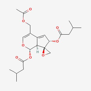 This compound possesses a complex chemical architecture characterized by a spiro[cyclopenta[c]pyran-7,2'-oxirane] core structure. Its systematic IUPAC name is [(1S,6S,7R,7aS)-4-(acetyloxymethyl)-1-(3-methylbutanoyloxy)spiro[6,7a-dihydro-1H-cyclopenta[c]pyran-7,2'-oxirane]-6-yl] 3-methylbutanoate.[2]