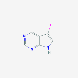 This compound, also known as 7-deazapurine, is a crucial heterocyclic building block in medicinal chemistry. Its structure is a derivative of pyrimidine, and it serves as a precursor for a wide range of substituted analogs with diverse biological activities, including antiviral and anticancer properties. The introduction of an iodine atom at the C-5 position provides a reactive site for further functionalization, making it a valuable intermediate in the synthesis of complex molecules.