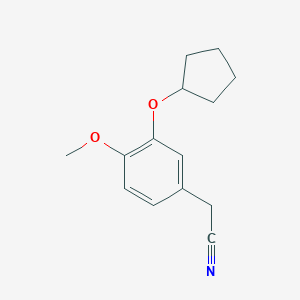 The mechanism of action of 3-(Cyclopentyloxy)-4-methoxyphenylacetonitrile and its derivatives often involves the inhibition of specific enzymes or receptors. For example, some derivatives act as inhibitors of tumor necrosis factor-alpha (TNF-α) production, which plays a role in inflammatory responses . The molecular targets and pathways involved include the modulation of cytokine production and signaling pathways related to inflammation and cell proliferation.