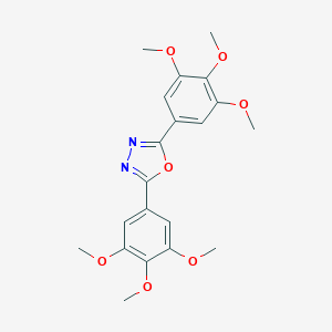 The synthesis of 2,5-Bis(3,4,5-trimethoxyphenyl)-1,3,4-oxadiazole typically involves the cyclization of a suitable precursor. One common method is the reaction of 3,4,5-trimethoxybenzohydrazide with an appropriate carboxylic acid derivative under acidic or basic conditions. The reaction proceeds through the formation of an intermediate hydrazone, which then undergoes cyclization to form the oxadiazole ring.