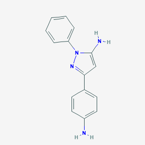 BenchChem offers high-quality Pyrazole, 5-amino-3-(p-aminophenyl)-1-phenyl- suitable for many research applications. Different packaging options are available to accommodate customers' requirements. Please inquire for more information about Pyrazole, 5-amino-3-(p-aminophenyl)-1-phenyl- including the price, delivery time, and more detailed information at info@benchchem.com.