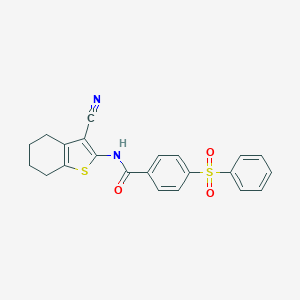 InChI=1S/C22H18N2O3S2/c23-14-19-18-8-4-5-9-20(18)28-22(19)24-21(25)15-10-12-17(13-11-15)29(26,27)16-6-2-1-3-7-16/h1-3,6-7,10-13H,4-5,8-9H2,(H,24,25) |