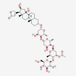 [(2R,3R,4S,6S)-6-[(2R,3S,4S,6S)-6-[(2R,3S,4S,6R)-6-[[(3S,5R,8R,9S,10S,13R,14S,16S,17R)-14,16-dihydroxy-10,13-dimethyl-17-(5-oxo-2H-furan-3-yl)-1,2,3,4,5,6,7,8,9,11,12,15,16,17-tetradecahydrocyclopenta[a]phenanthren-3-yl]oxy]-4-hydroxy-2-methyloxan-3-yl]oxy-4-hydroxy-2-methyloxan-3-yl]oxy-2-methyl-3-[(2S,3R,4S,5S,6R)-3,4,5-trihydroxy-6-(hydroxymethyl)oxan-2-yl]oxyoxan-4-yl] acetate | |