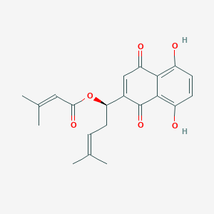 The research on beta,beta-dimethylacrylshikonin is a significant component of the larger field of naphthoquinone chemistry and pharmacology. Scientists are particularly interested in how the addition of a beta,beta-dimethylacryloyl side chain to the core shikonin structure influences its biological effects. ontosight.aimdpi.com This specific modification is a key area of investigation, as it can alter the compound's properties and its interactions with biological systems.