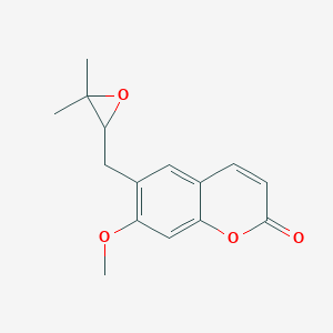 7-Methoxy-6-(3,3-dimethyloxiranylmethyl)-2H-1-benzopyran-2-one: is a complex organic compound belonging to the benzopyran family This compound is characterized by the presence of a benzopyran core structure, which is a fused ring system consisting of a benzene ring and a pyran ring