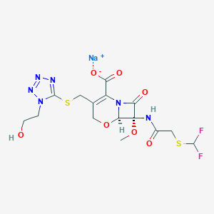 sodium;(6R,7R)-7-[[2-(difluoromethylsulfanyl)acetyl]amino]-3-[[1-(2-hydroxyethyl)tetrazol-5-yl]sulfanylmethyl]-7-methoxy-8-oxo-5-oxa-1-azabicyclo[4.2.0]oct-2-ene-2-carboxylate | |