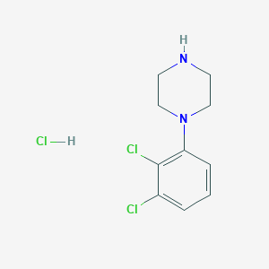 The mechanism of action of 1-(2,3-Dichlorophenyl)piperazine hydrochloride involves its interaction with various molecular targets. It has been shown to act as a partial agonist of dopamine D2 and D3 receptors . This interaction modulates the dopaminergic pathways in the brain, which is crucial for its pharmacological effects. The compound’s effects on serotonin receptors are also being studied, although its exact role as a serotonin receptor agonist remains unclear .