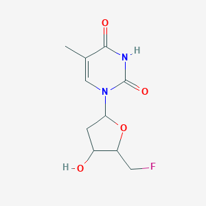1-[5-(Fluoromethyl)-4-hydroxyoxolan-2-yl]-5-methylpyrimidine-2,4-dione is a fluorinated thymidine nucleoside analog. Its structure features a pyrimidine-2,4-dione core substituted with a 5-methyl group and a fluoromethyl-hydroxylated oxolane (tetrahydrofuran) ring at the N1 position. This compound is structurally related to antiviral nucleosides, where modifications to the sugar moiety and pyrimidine base aim to enhance metabolic stability, target specificity, and potency .