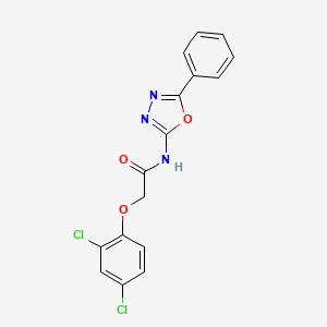2-(2,4-dichlorophenoxy)-N-(5-phenyl-1,3,4-oxadiazol-2-yl)acetamide is a synthetic compound that combines a dichlorophenoxy moiety with a 1,3,4-oxadiazole ring. This compound has garnered attention in medicinal chemistry due to its potential biological activities, particularly in anticancer and antimicrobial applications. The oxadiazole scaffold is known for its diverse pharmacological properties, making it a valuable focus for research.