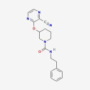 3-((3-cyanopyrazin-2-yl)oxy)-N-phenethylpiperidine-1-carboxamide is a complex organic compound characterized by its unique structural features, including a piperidine ring, a phenethyl group, and a cyanopyrazine moiety. This compound has garnered attention for its potential biological activities, particularly in the fields of medicinal chemistry and pharmacology.
