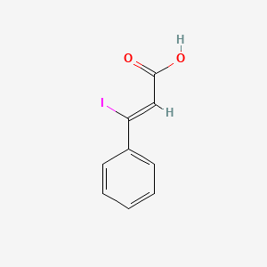 This synthetic pathway leverages the well-established Sandmeyer reaction. The first step involves the diazotization of the amino group on (Z)-3-amino-3-phenylacrylic acid. This is achieved by treating the starting material with a source of nitrous acid, commonly generated in situ from sodium nitrite (B80452) and a strong mineral acid like hydrochloric acid, at reduced temperatures (typically 0-5 °C) to ensure the stability of the resulting diazonium salt. The diazonium intermediate, without being isolated, is then subjected to a reaction with an iodide salt, such as potassium iodide. This results in the displacement of the diazonium group by an iodine atom, yielding this compound directly. The success of this method is highly dependent on the stereochemical purity of the starting (Z)-3-amino-3-phenylacrylic acid, as the reaction proceeds with retention of the double bond configuration.