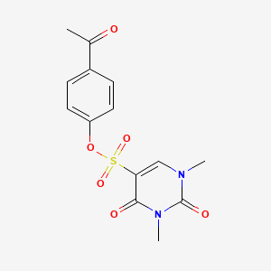 The mechanism of action of 4-Acetylphenyl 1,3-dimethyl-2,4-dioxo-1,2,3,4-tetrahydropyrimidine-5-sulfonate involves its interaction with specific molecular targets and pathways. It is believed to exert its effects by binding to enzymes or receptors, thereby modulating their activity. The exact molecular targets and pathways involved are still under investigation, but preliminary studies suggest its potential in inhibiting certain enzymes and disrupting cellular processes .