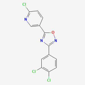 The synthesis of 2-Chloro-5-(3-(3,4-dichlorophenyl)-1,2,4-oxadiazol-5-yl)pyridine typically involves the formation of the oxadiazole ring followed by its attachment to the pyridine ring. One common method involves the reaction of 3,4-dichlorobenzohydrazide with cyanogen bromide to form the oxadiazole ring, which is then coupled with 2-chloropyridine under suitable conditions .