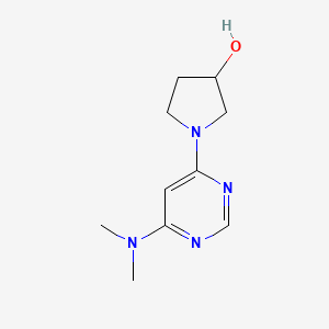 1-[6-(Dimethylamino)pyrimidin-4-yl]pyrrolidin-3-ol is a heterocyclic compound featuring a pyrrolidine ring substituted with a pyrimidine moiety bearing a dimethylamino group at the 6-position. This structure is critical in medicinal chemistry, where pyrrolidine and pyrimidine derivatives are often explored for their pharmacological properties, including kinase inhibition and receptor modulation.
