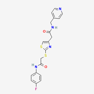 N-(4-fluorophenyl)-2-((4-(2-oxo-2-((pyridin-4-ylmethyl)amino)ethyl)thiazol-2-yl)thio)acetamide is a compound that has garnered attention for its potential biological activities, particularly in the fields of cancer research and anti-inflammatory therapies. This article provides a comprehensive overview of its biological activity, including relevant data tables, case studies, and detailed research findings.
