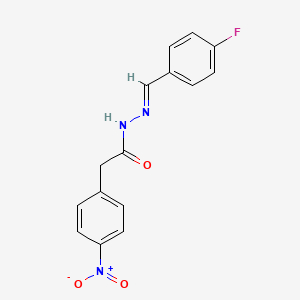 The synthesis of (E)-N’-(4-fluorobenzylidene)-2-(4-nitrophenyl)acetohydrazide typically involves the condensation reaction between 4-fluorobenzaldehyde and 2-(4-nitrophenyl)acetohydrazide. The reaction is usually carried out in the presence of an acid catalyst, such as acetic acid, under reflux conditions. The reaction mixture is then cooled, and the product is isolated by filtration and recrystallization.