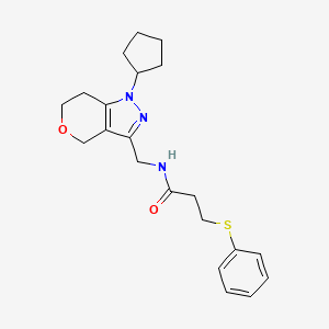 N-((1-cyclopentyl-1,4,6,7-tetrahydropyrano[4,3-c]pyrazol-3-yl)methyl)-3-(phenylthio)propanamide is a complex organic compound that has garnered attention for its potential biological activities. This article delves into its biological activity, mechanisms of action, and relevant research findings.