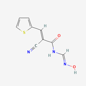 The mechanism of action of 2-cyano-N-[(hydroxyimino)methyl]-3-(2-thienyl)acrylamide involves its interaction with specific molecular targets. The cyano group and hydroxyimino group can form hydrogen bonds and interact with enzymes and receptors, potentially inhibiting their activity. The thienyl group can also participate in π-π interactions with aromatic residues in proteins .