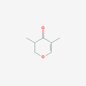 The primary academic insight is the confirmation of the compound's existence, identified as 3,5-dimethyl-3,4-dihydro-2H-pyran-4-one or its isomer 2,3-Dihydro-3,5-dimethyl-4H-pyran-4-one. molaid.com It is listed by chemical suppliers, indicating it is likely synthesized for research or commercial purposes, though the synthetic routes are not published in readily accessible literature. bldpharm.com One source alludes to a reaction involving this compound that results in "a remarkable instance of diastereofacial selectivity," but the context and details of this reaction are not available in the public domain. molaid.com Beyond this, there is no significant body of research progress to summarize for this specific molecule.