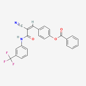 [4-[(Z)-2-cyano-3-oxo-3-[3-(trifluoromethyl)anilino]prop-1-enyl]phenyl] benzoate: is a complex organic compound known for its unique structural features and potential applications in various scientific fields. This compound is characterized by the presence of a cyano group, a trifluoromethyl group, and a benzoate ester, which contribute to its distinct chemical properties.
