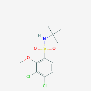 (3,4-Dichloro-2-methoxyphenyl)sulfonylamine is a complex organic compound characterized by its unique structural features. This compound contains a dichloromethoxyphenyl group attached to a sulfonyl amine moiety, which is further connected to a tetramethylbutyl group. The presence of these functional groups imparts distinct chemical properties and reactivity to the compound.
