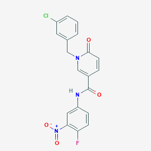 1-[(3-chlorophenyl)methyl]-N-(4-fluoro-3-nitrophenyl)-6-oxo-1,6-dihydropyridine-3-carboxamide is a complex organic compound that belongs to the class of heterocyclic compounds It features a pyridine ring substituted with various functional groups, including a chlorophenyl group, a fluoronitrophenyl group, and a carboxamide group