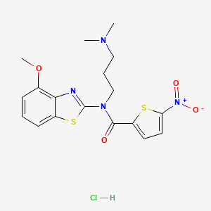 N-(3-(dimethylamino)propyl)-N-(4-methoxybenzo[d]thiazol-2-yl)-5-nitrothiophene-2-carboxamide hydrochloride is a complex organic compound that has garnered attention in medicinal chemistry due to its potential biological activities. This compound features a unique structural arrangement that includes a thiazole moiety, a nitrothiophene core, and a dimethylamino propyl side chain, which may contribute to its pharmacological properties.