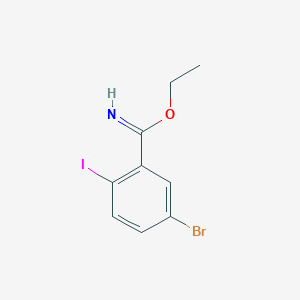 Ethyl 5-bromo-2-iodobenzenecarboximidate is an organic compound that belongs to the class of benzenecarboximidates It is characterized by the presence of both bromine and iodine atoms attached to a benzene ring, along with an ethyl ester group