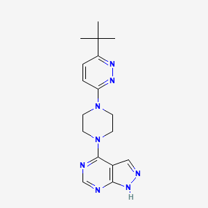 3-tert-butyl-6-(4-{1H-pyrazolo[3,4-d]pyrimidin-4-yl}piperazin-1-yl)pyridazine is unique due to its specific combination of a pyrazolo[3,4-d]pyrimidine core with a piperazine ring substituted with a tert-butylpyridazinyl group. This unique structure imparts distinct biological activities and makes it a valuable compound for various scientific research applications.