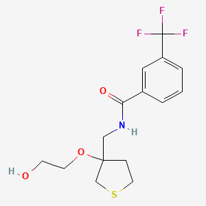 N-{[3-(2-hydroxyethoxy)thiolan-3-yl]methyl}-3-(trifluoromethyl)benzamide is a compound of interest due to its potential biological activities, particularly in the fields of medicinal chemistry and pharmacology. This article aims to provide a comprehensive overview of its biological activity, including synthesis, mechanisms of action, and relevant case studies.