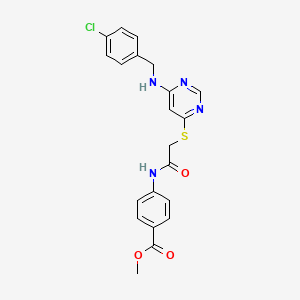 Methyl 4-{2-[(6-{[(4-chlorophenyl)methyl]amino}pyrimidin-4-yl)sulfanyl]acetamido}benzoate is a complex organic compound with potential applications in various scientific fields. This compound features a pyrimidine ring, a benzoate ester, and a chlorophenyl group, making it a versatile molecule for research and industrial purposes.