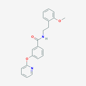 The mechanism of action of N-(2-methoxyphenethyl)-3-(pyridin-2-yloxy)benzamide involves its interaction with specific molecular targets. The compound can bind to receptors or enzymes, modulating their activity and triggering downstream signaling pathways. The exact molecular targets and pathways depend on the specific application and context of use.