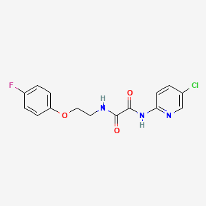 N-(5-Chloropyridin-2-yl)-N'-[2-(4-fluorophenoxy)ethyl]ethanediamide is a synthetic organic compound characterized by its ethanediamide backbone, substituted with a 5-chloropyridin-2-yl group and a 2-(4-fluorophenoxy)ethyl moiety. The ethanediamide (oxalamide) linkage is a common pharmacophore in medicinal chemistry due to its hydrogen-bonding capacity and metabolic stability. The 5-chloropyridin-2-yl group is frequently employed in pharmaceuticals for its electron-withdrawing properties, which enhance binding affinity to biological targets.