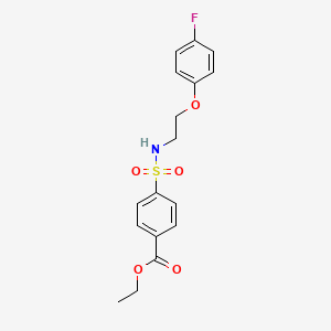 The synthesis of ethyl 4-{[2-(4-fluorophenoxy)ethyl]sulfamoyl}benzoate typically involves multiple steps. One common method includes the reaction of 4-fluorophenol with ethylene oxide to form 2-(4-fluorophenoxy)ethanol. This intermediate is then reacted with sulfamoyl chloride to produce 2-(4-fluorophenoxy)ethylsulfamoyl chloride. Finally, this compound is esterified with ethyl 4-hydroxybenzoate under suitable conditions to yield the target compound.