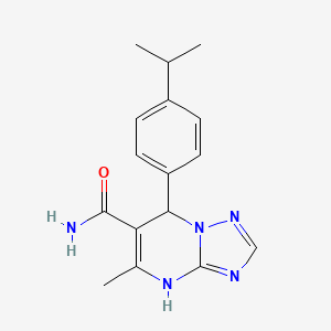 7-(4-Isopropylphenyl)-5-methyl-4,7-dihydro-[1,2,4]triazolo[1,5-a]pyrimidine-6-carboxamide is a compound belonging to the class of [1,2,4]triazolo[1,5-a]pyrimidines. This compound has garnered attention due to its diverse biological activities, particularly its antimicrobial and anticancer properties. The structural features of this compound, including the isopropylphenyl group and carboxamide functional group, influence its biological interactions and pharmacokinetic properties.