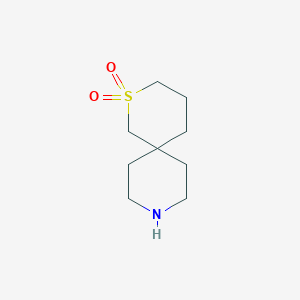 The synthesis of 2-Thia-9-azaspiro[5.5]undecane 2,2-dioxide typically involves the formation of the spirocyclic ring system through cyclization reactions. One common method includes the reaction of a suitable precursor with sulfur and nitrogen-containing reagents under controlled conditions . Industrial production methods may involve optimization of these synthetic routes to ensure high yield and purity .