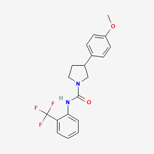 The mechanism of action of 3-(4-methoxyphenyl)-N-[2-(trifluoromethyl)phenyl]pyrrolidine-1-carboxamide involves its interaction with specific molecular targets and pathways . The trifluoromethyl group plays a crucial role in enhancing the compound’s binding affinity to its targets, thereby increasing its efficacy. The exact molecular targets and pathways can vary depending on the specific application of the compound.
