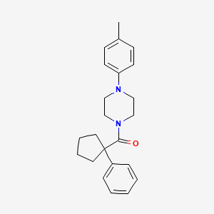 4-(4-Methylphenyl)piperazinyl phenylcyclopentyl ketone is a synthetic compound that has garnered attention for its potential biological activities. This compound features a piperazine ring, a phenyl group, and a cyclopentyl ketone moiety, which contribute to its unique pharmacological profile. Research into this compound has explored its interactions with various biological systems, including enzyme inhibition and receptor binding.