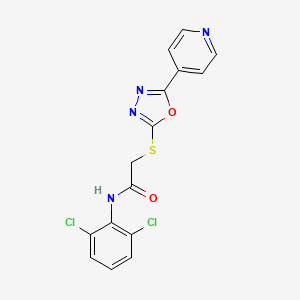 N-(2,6-dichlorophenyl)-2-{[5-(pyridin-4-yl)-1,3,4-oxadiazol-2-yl]sulfanyl}acetamide is a synthetic organic compound that belongs to the class of acetamides. This compound is characterized by the presence of a dichlorophenyl group, a pyridinyl group, and an oxadiazole ring, which are linked through a sulfanyl bridge to an acetamide moiety. Compounds with such structures are often studied for their potential biological activities and applications in various fields of science and industry.