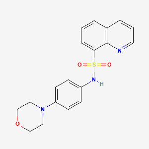The mechanism of action of N-[4-(morpholin-4-yl)phenyl]quinoline-8-sulfonamide involves its interaction with specific molecular targets. The compound can bind to enzymes or receptors, inhibiting their activity. This interaction often involves hydrogen bonding, hydrophobic interactions, and van der Waals forces. The pathways affected by this compound can vary depending on the specific target, but they often involve key cellular processes such as signal transduction, metabolism, and gene expression.