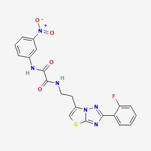 N1-(2-(2-(2-fluorophenyl)thiazolo[3,2-b][1,2,4]triazol-6-yl)ethyl)-N2-(3-nitrophenyl)oxalamide is a complex organic compound that belongs to the class of triazolo-thiazole derivatives. This compound has garnered interest due to its diverse biological activities, including potential antifungal, antimicrobial, anticancer, and enzyme inhibitory properties. The following sections will detail the biological activity of this compound based on recent research findings.
