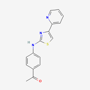 1-[4-[(4-Pyridin-2-yl-1,3-thiazol-2-yl)amino]phenyl]ethanone is a complex organic compound that features a pyridine ring, a thiazole ring, and an ethanone group. This compound is of significant interest in medicinal chemistry due to its potential biological activities and applications in various fields.