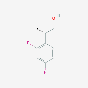 (2S)-2-(2,4-Difluorophenyl)propan-1-ol is a chiral secondary alcohol featuring a 2,4-difluorophenyl group attached to a propanol backbone. The stereochemistry at the second carbon (S-configuration) is critical for its interactions in biological and chemical systems. This compound is often utilized as a precursor in pharmaceuticals and agrochemicals due to the fluorine atoms’ electron-withdrawing effects, which enhance stability and binding affinity .