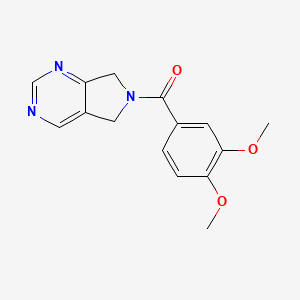 The synthesis of 6-(3,4-dimethoxybenzoyl)-5H,6H,7H-pyrrolo[3,4-d]pyrimidine typically involves the cyclization of appropriate precursors under controlled conditions. One common method involves the reaction of 3,4-dimethoxybenzoyl chloride with a pyrrolo[3,4-d]pyrimidine derivative in the presence of a base such as triethylamine. The reaction is usually carried out in an organic solvent like dichloromethane at room temperature .